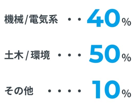 機械工学を学んだ社員が多いですが、理系の幅広い分野で学んだ社員が活躍しています。