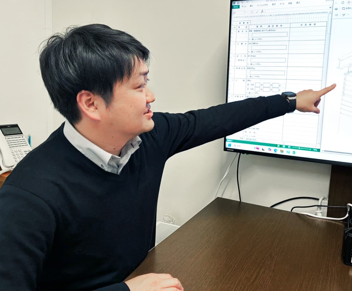 まずは、入社後に経験豊富な先輩たちが丁寧に図面の書き方や、計算書・書類の作り方を段階を追って、ていねいに教えてくれます。
