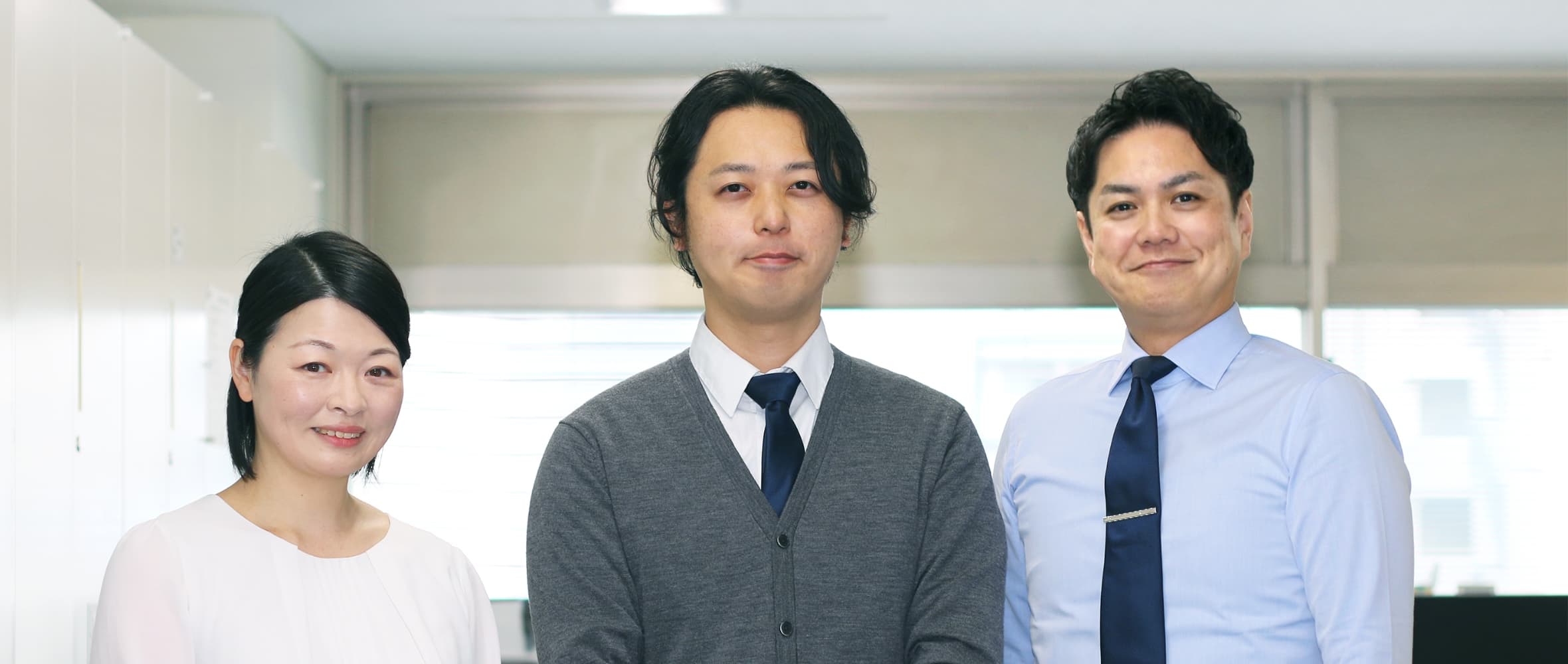 人事担当(右)と業界未経験から入社した2名(中央・左)を迎え、3名でお送りする「社員トーク」です。